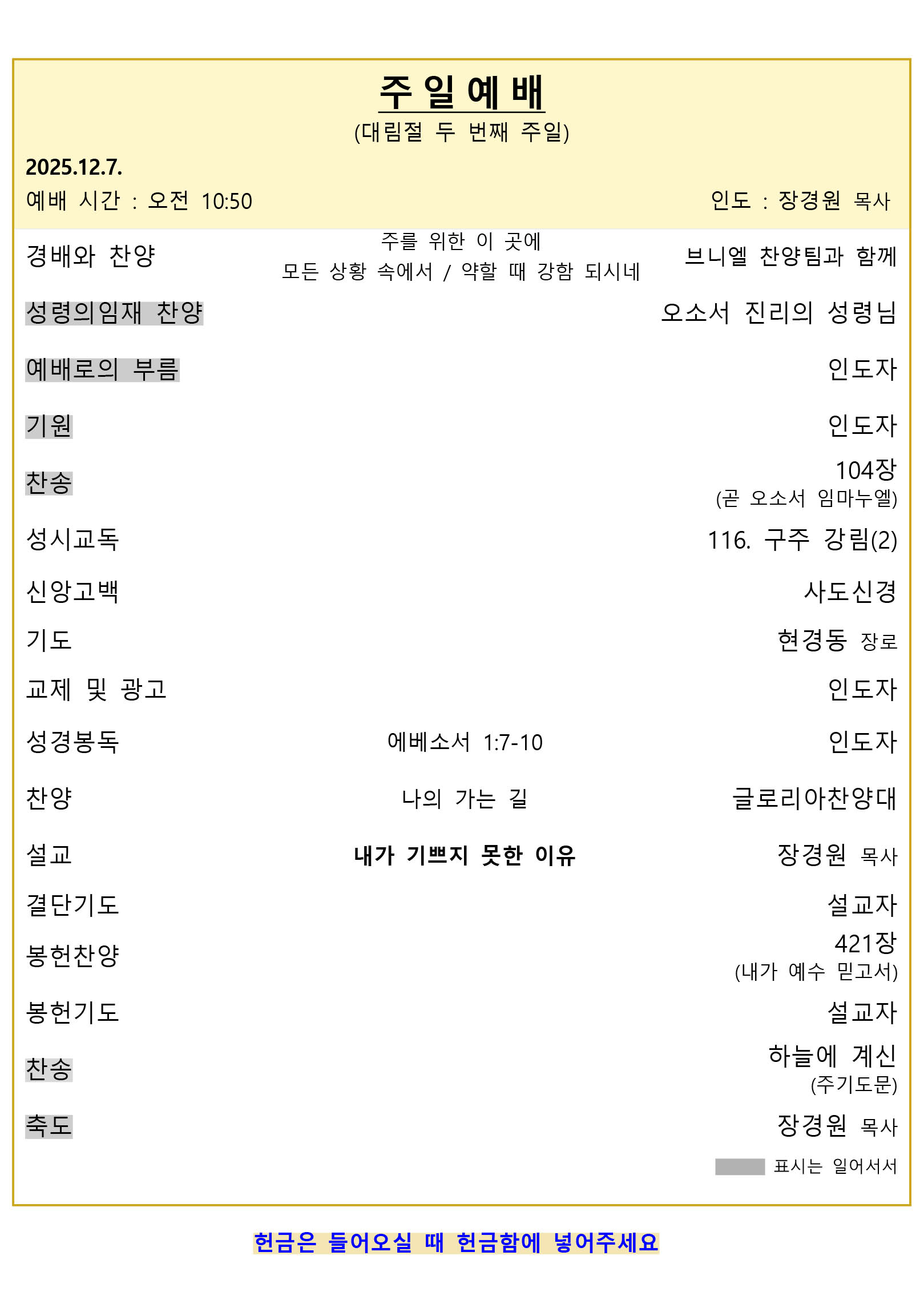 예배 안내