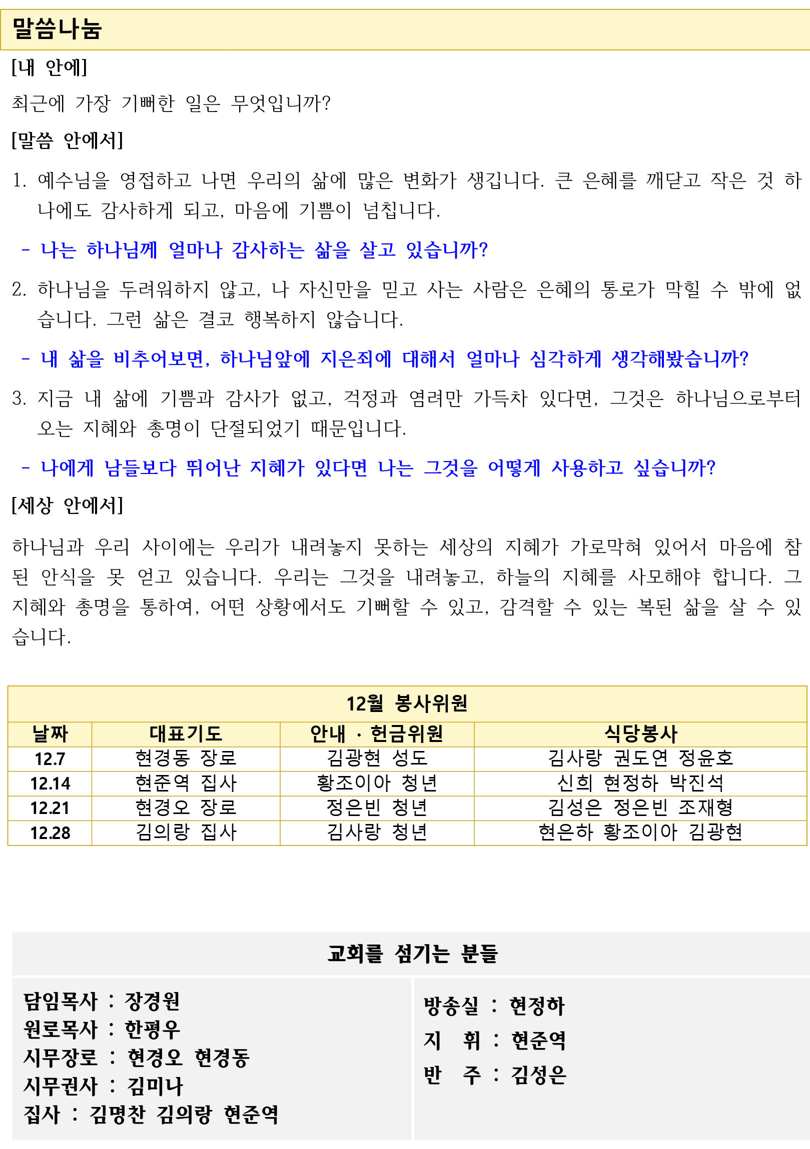 말씀과 찬양