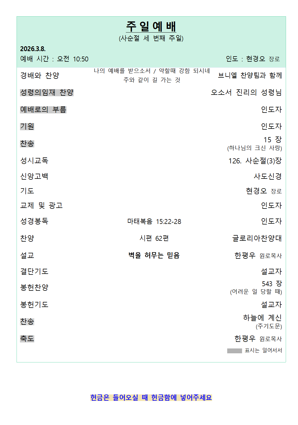 예배 안내