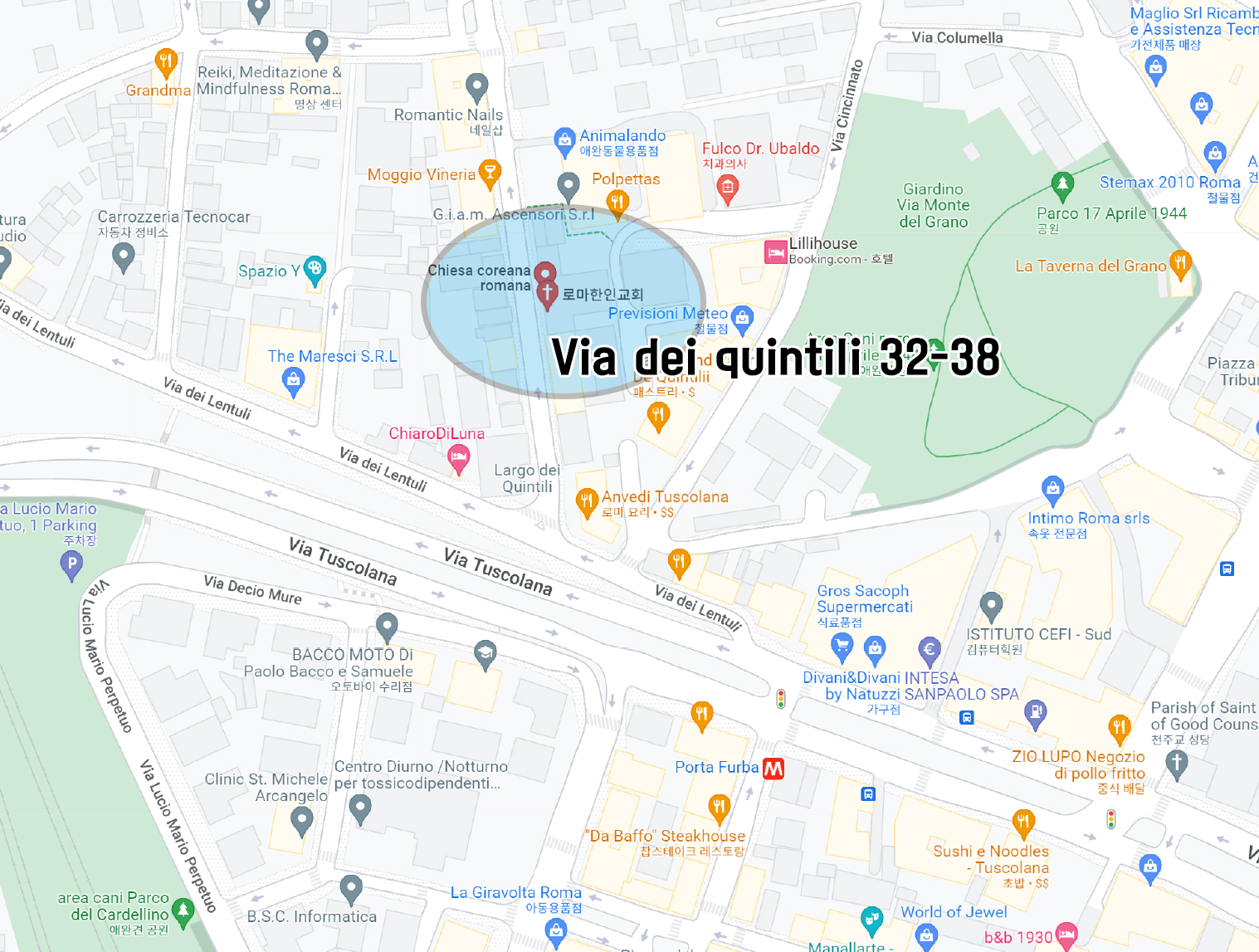 Porta furba 역 ( 9번째 역 ) 에서 내리시면 됩니다. 역에서 약 100 m 걸어오시면 됩니다.